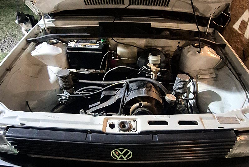 Começou em 2025, final do ano, desmontando tudo, tirando o motor do carro e eu havia acabado de instalar a carburação dupla. Foto acima do dia que terminei. O carro ficou muito com a dupla. Resolvi dar continuidade a reforma do coração da máquina. Foi a primeira vez que tirei sozinho um motor de um carro. Horas e horas, por dias, pensando no que fazer, pra não ter imprevisto algum. Deu muito certo. Tirar foi a parte mais simples, até porque no Gol tem muito espaço e o motor sem as tralhas que o envolvem é bem pequeno e baixo.