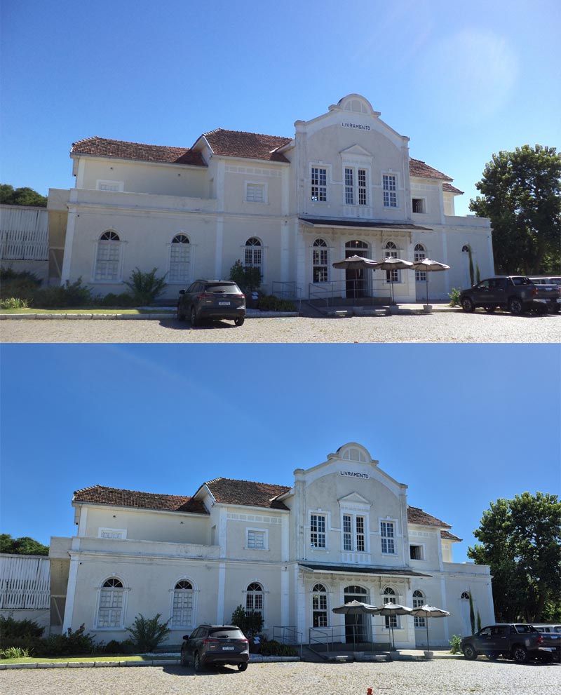 Comparando o meu celular hoje tem capacidade de armazenamento de 256Gb (64 vezes maior), vídeo em 8k (10 vezes mais), o zoom óptico, que é aquele feito apenas pela lente, é de 3 vezes (70% menor), mas com zoom digital, que é aquele que multiplica o zoom feito pela lente por aquele que o software consegue fazer, chegando a 30 vezes (10 vezes mais). A comparação que vou mostrar abaixo o celular é melhor. Sony primeiro, Samsung depois. Estação de trem de Santana do Livramento – RS.