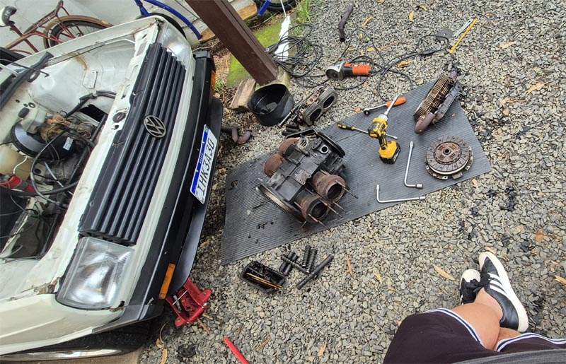 Finalmente dois dias atrás conseguimos voltar com o motor pro carro e liga-lo. 45 dias. Ainda precisamos de mais peças. Customização é complicado. Fazer o normal não tem graça. Eu queria fazer um motor mais forte. Queria um 1700, só pra dizer que tenho. Por motivos econômicos está a cada dia mais difícil ostentar.