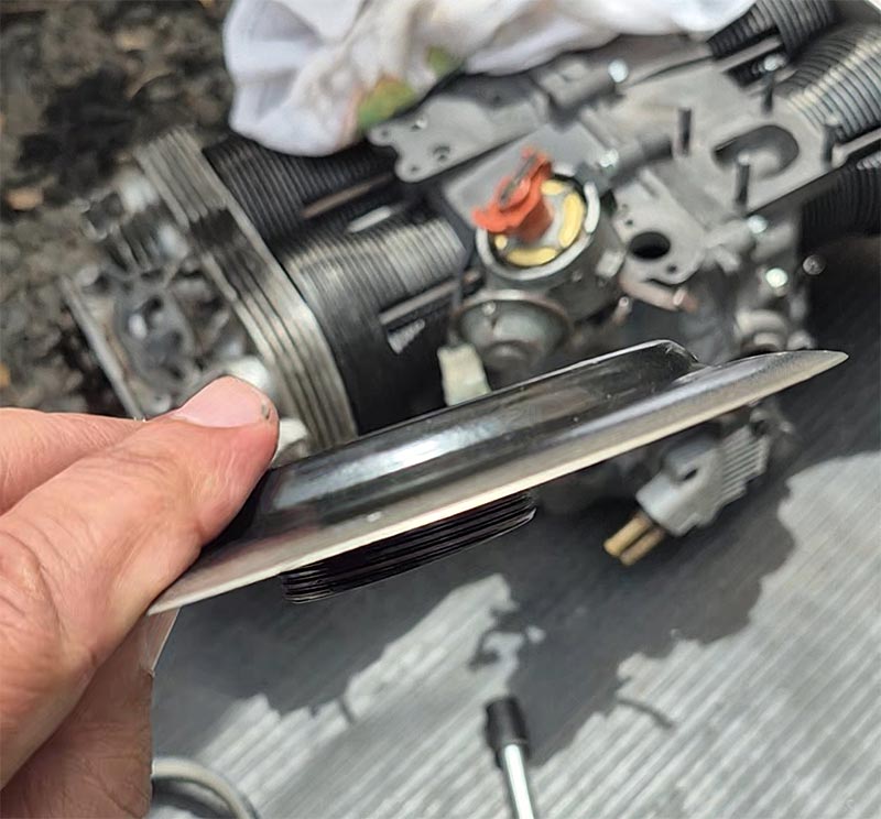 Nessa reta final surgiu a necessidade de mandar fazer uma polia de virabrequim. Isso mesmo. A que comprei nova não resistiu e quebrou. Foto acima, ela virou um prato coitada. Outra história que talvez um dia eu conte. Sem polia a gente não consegue andar com o carro, visto que ela movimenta alternador e também o “ventilador” que joga ar para dentro do motor.